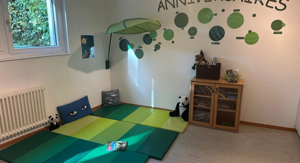Le jardin d’enfants Le Polichinelle se situe au rez de chaussée d’un immeuble et bénéficie d’une place de jeux attenante.